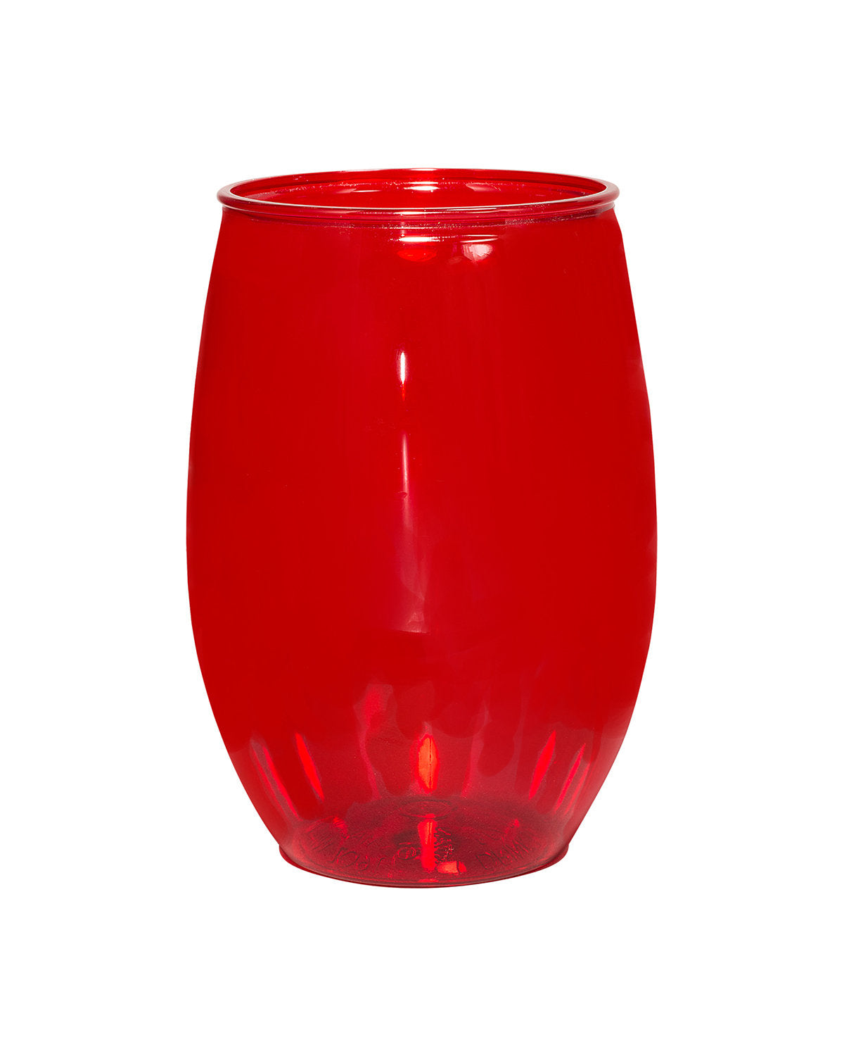 16 oz. (473 mL) stemless wine glass made of PET plastic in the USA; Hand-wash only; Do not place in freezer; BPA-free Recyclable under symbol #1; Product Size: 2.0875" w x 4.5" h